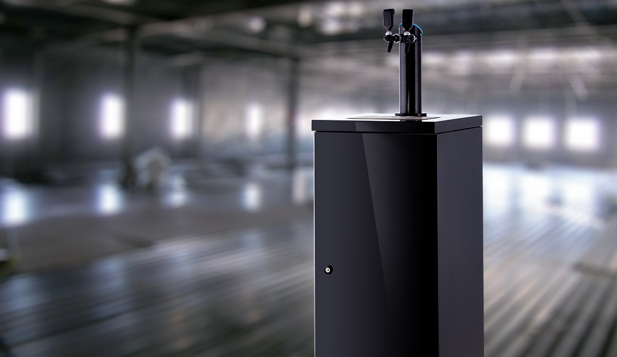 The cabinet is ideally used as a freestanding base unit with any faucet of your choice. It is lockable and accommodates a water cooler and carbon dioxide cylinder.