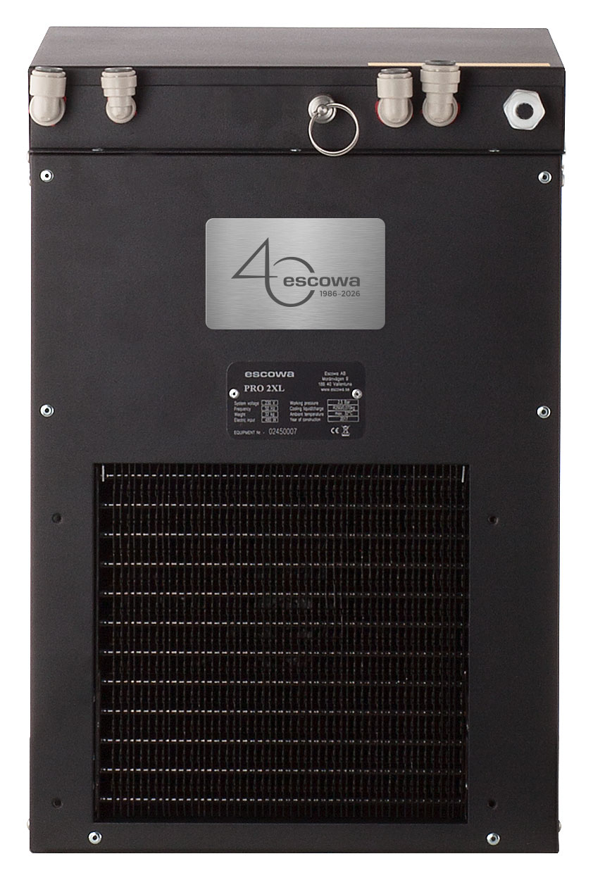 Pro40 ersätter Pro2 XL och är vår jubileumsutgåva i samband med att Escowa fyller 40. Maskinen levererar kylt stilla och kylt kolsyrat vatten. Pro40 är anpassad för lite tuffare applikationer men med bibehållet krav på minsta möjliga avtryck i underskåpet.